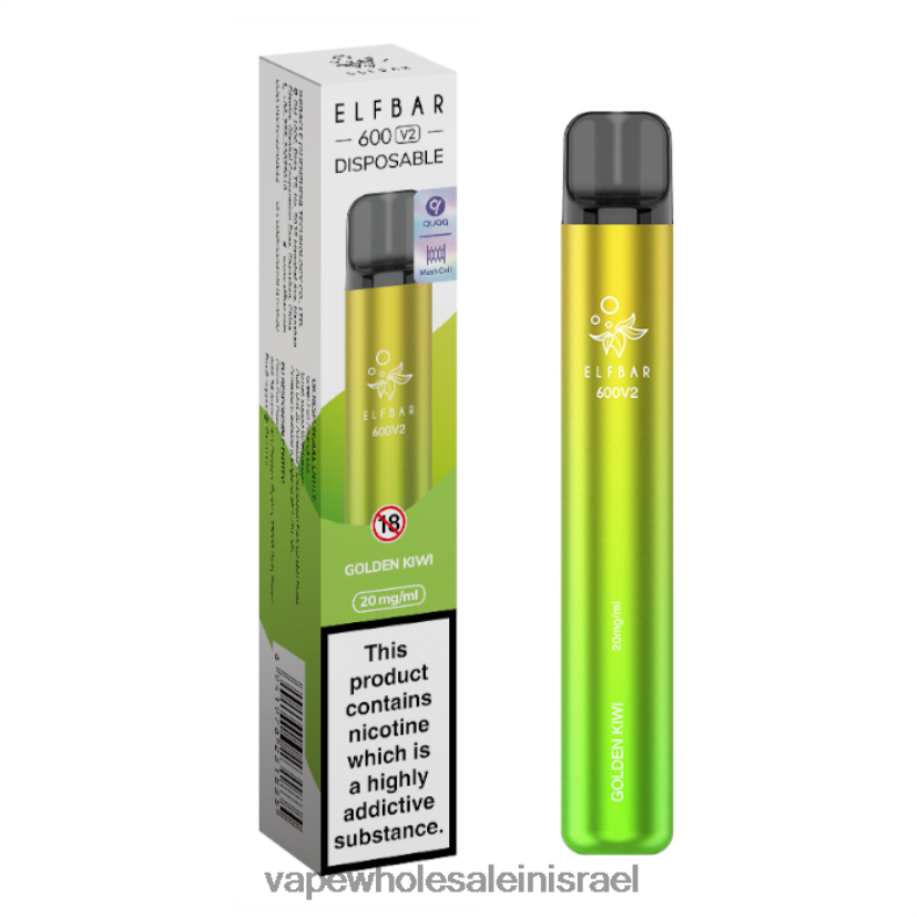 8X822D283 – סיגריה אלקטרונית מומלצת קיווי מוזהב ELFBAR 600V2 20 מ"ג