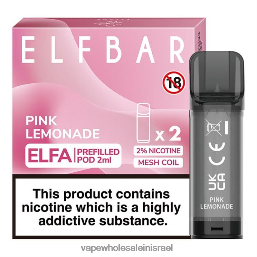 8X822D320 – סיגריה אלקטרונית לימונדה ורודה ELFBAR Elfa תרמיל מלא מראש – 2 מ"ל – 20 מ"ג (2 חבילות)