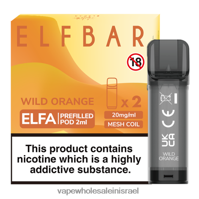 8X822D340 – סיגריה אלקטרונית כתום פראי ELFBAR Elfa תרמיל מלא מראש – 2 מ"ל – 20 מ"ג (2 חבילות)