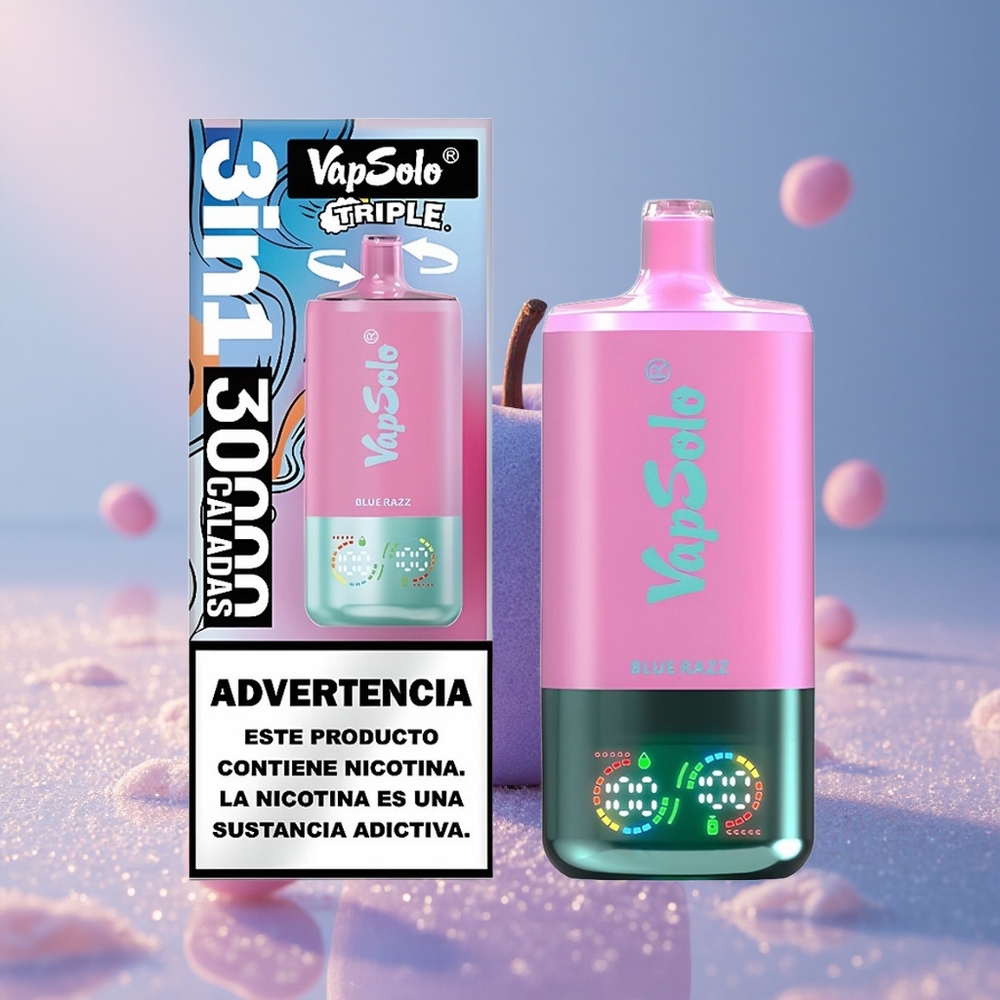Vapsolo Triple 30000 Puffs דיספוזבל ופייפ בלו ראז 40ml